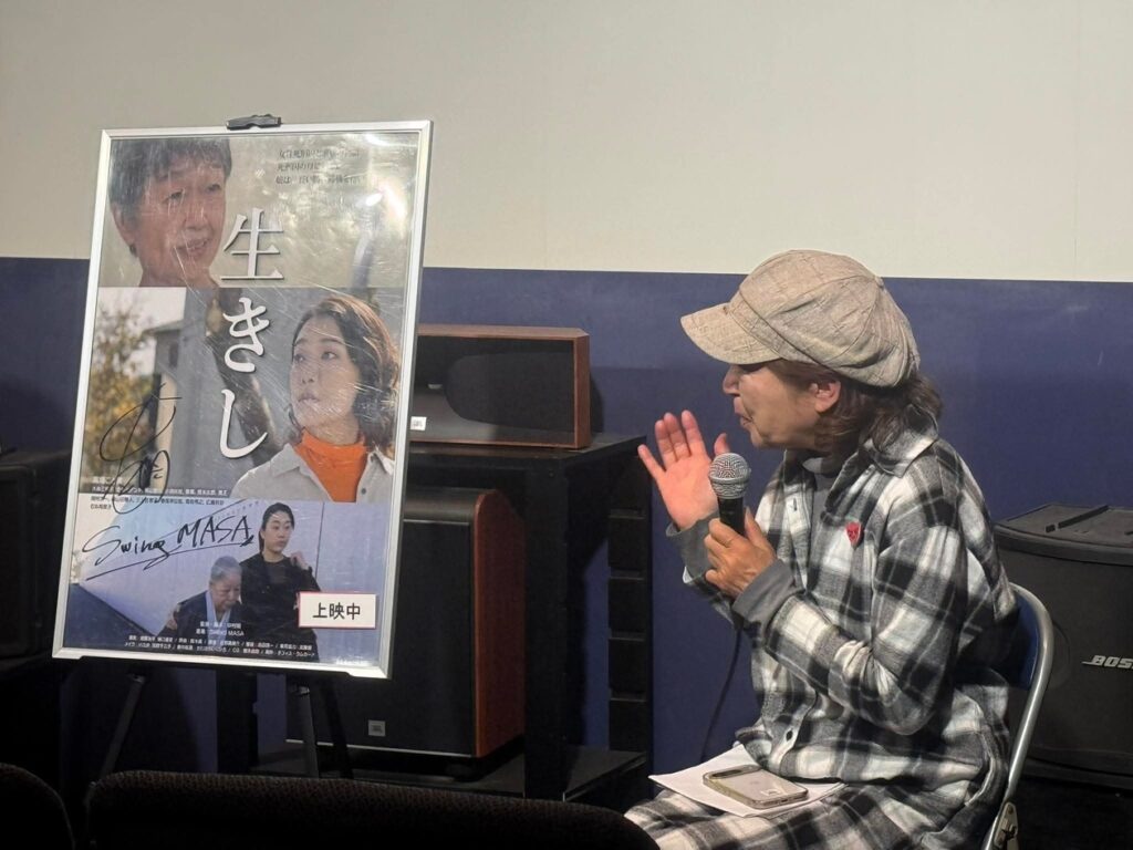 上映後のアフタートークではわたしの方から監督に「なぜこの映画を撮ろうと考えたのか」とそのきっけかなどをお聞きした。監督はテレビ局勤務時、長野智子さんがキャクターを務めた報道番組では、東住吉事件の青木恵子さんの冤罪事件などにも関わってきた。映画「生きし」も冤罪・埼玉愛犬家連続殺人事件の冤罪犠牲者・風間博子さんと面会する中で、構想を練り、今回は外にいる娘さんを焦点に取り上げたという。私は映画の前半に出てくる、ちょっと怪しげな男性(風間さんと獄中結婚し、その後、覚せい剤使用で逮捕され、離婚した男性)についてお聞きした。その男性は実在した方だという。