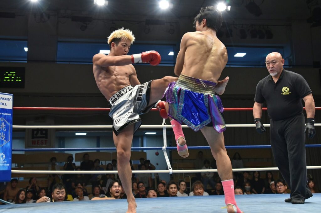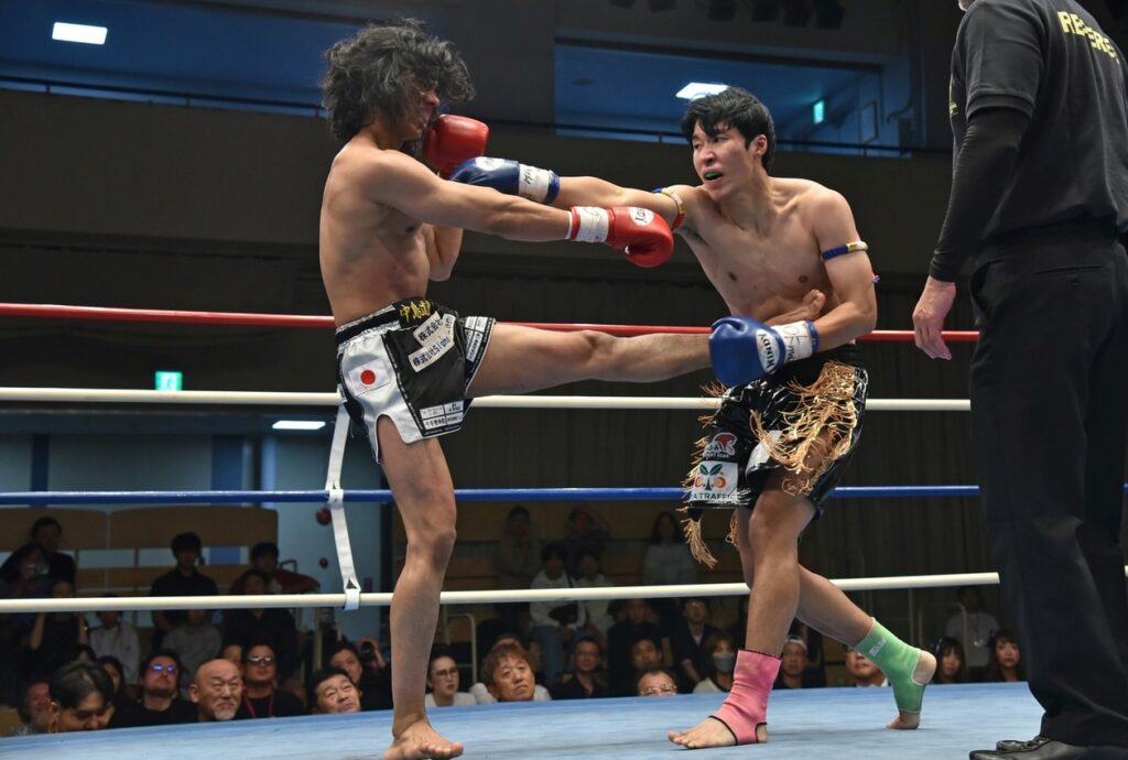 大きな差は無いが、パンチと蹴りの攻防が続き、第3ラウンドには山田旬が圧力掛けて蹴りのインパクトを残し僅差ながら判定勝利。