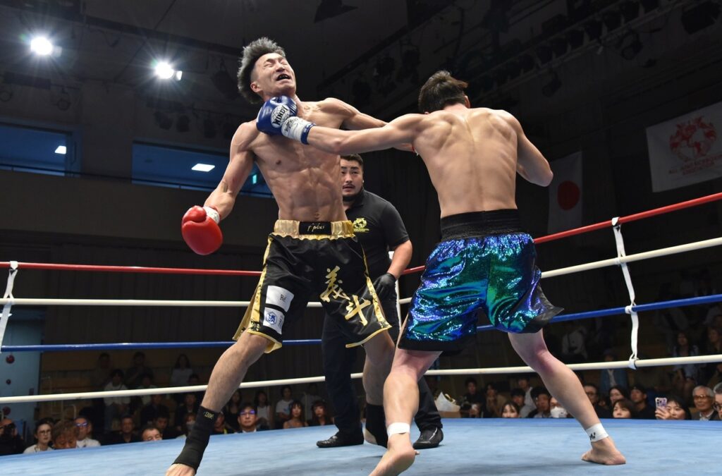 菊池圭治は変則的にフェイント掛けながら蹴りやパンチを当てるが、第3ラウンドに星のケースケが菊池をロープに詰めてパンチ連打。最終ラウンドを制した星のケースケが際どくも勝利した。