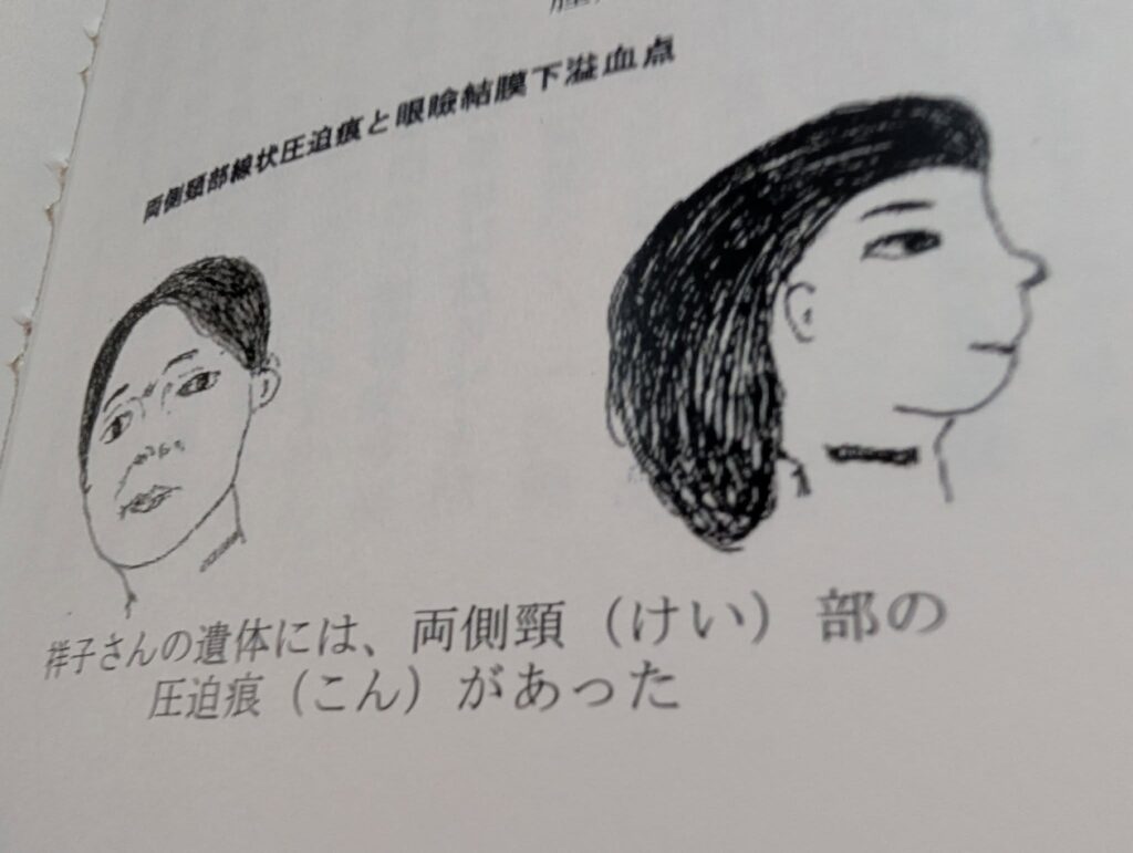 警察からの知らせを受けた洋さんは西成署に向かい霊安室で祥子さんの遺体と対面。昼前には両親と敏さんが西成署に到着、霊安室で祥子さんと対面。その際、祥子さんの両首に赤黒い傷(頸部圧迫痕)があるのを見つけ、医師である母・晶子さんに告げた。祥子さんの遺体を司法解剖の結果をうけて西成署は、死因を「溺死」とし「過労による自殺の可能性が高い」と遺族に説明した。