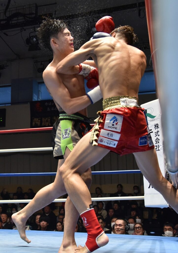 蹴りからパンチへ繋いだ西山天晴の左フックヒットし、石井隆浩がバランス崩した後、右ストレートでノックダウンを奪った。その後もパンチでコーナーに追い込み、連打したところでレフェリーストップが掛かり、西山のTKO勝利となった。