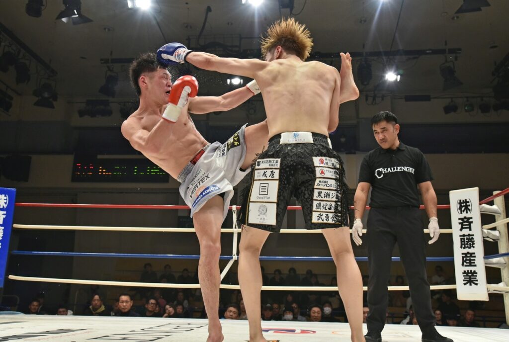 初回、蹴りからパンチ、ヒジ打ちと多彩に攻め合う両者。互角の展開は差は付き難いが、第2ラウンドはパンチの攻勢強めた切詰大貴が優った。第3ラウンド、落ち着きが出て来た吉田凛汰朗。第4ラウンドには冷静な吉田のパンチヒットが増えた。