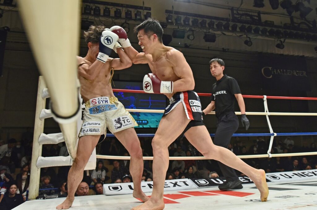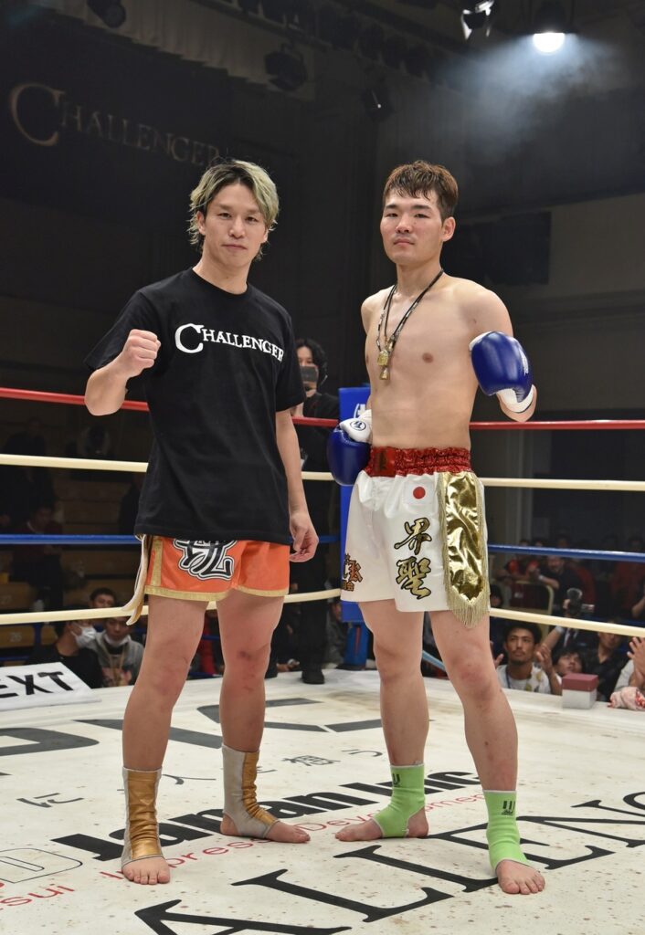 この試合は勝敗決定のCHALLENGERルール。引分けから延長戦を行なって勝利者は工藤叶雅となった。