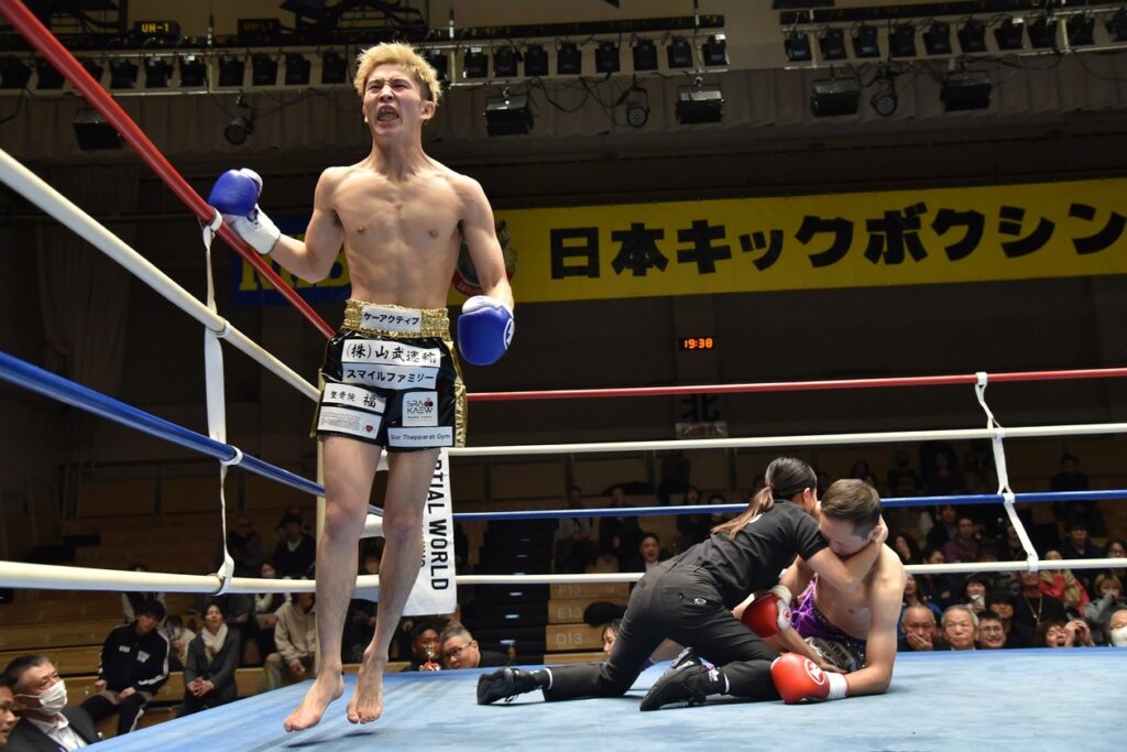 初回は安田学登が前蹴り左ミドルキックでリズム掴みパンチを加えて主導権支配。第2ラウンドも安田の勢いは衰えずも、ソムブラユン・ヒロキもローキックで前進。やや劣勢もパンチの距離に入った中、右フックのクロスカウンター一発で倒したソムブラユン・ヒロキ。カウント中のレフェリーストップとなり、意外な逆転TKO勝利となった。