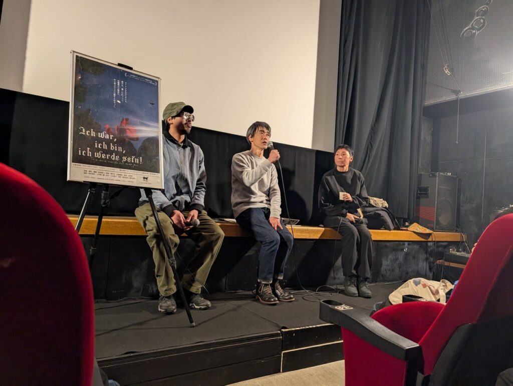 休憩を挟み、2本目の「Ich war, ich bin, ich werde sein!(I Was, I Am, and I Will Be! イッヒ・ヴァール、イッヒ・ビン、イッヒ・ヴェルデ・ザイン)」の上映。この作品は、「月釜」で助監督だった板倉義之君が監督、編集した。2019年センターが閉鎖され、それまでも釜ヶ崎のあちこちで撮り続けていた板倉君とレオが、もう釜ヶ崎の人たちを撮れなくなるのでは、撮り始めたフィルムをこの作品にまとめた。釜ヶ崎を歩き、「あっあの人、気になる」と目星をつけた方にインタビューを申しこむ。レオがインタビューし、板倉君がカメラをまわす。