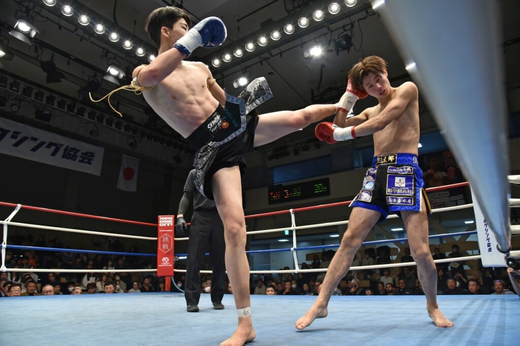第3ラウンドには広翔も蹴りで優る前進を見せ、パンチの圧力も加えて攻勢を維持。僅差だったが広翔が判定勝利した。