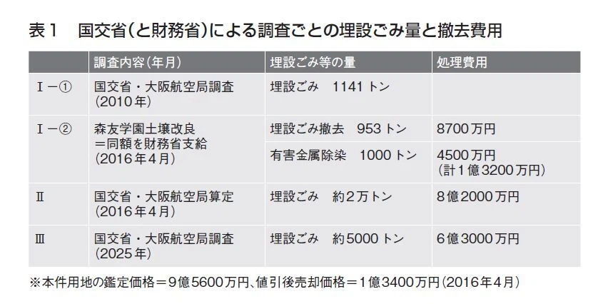 前出の契約に基づき、2016年4月に森友学園は国から「有益費」としてその代金の支払を受けた(表1「Ⅰ-②」)。この経過を見ると、本件用地の埋設ごみを、国はⅠ-①の調査で1151トンと測定し、Ⅰ-②では森友学園がその84%にあたる953トンを撤去したことを確認して、その分の費用を国家予算から支払っている。