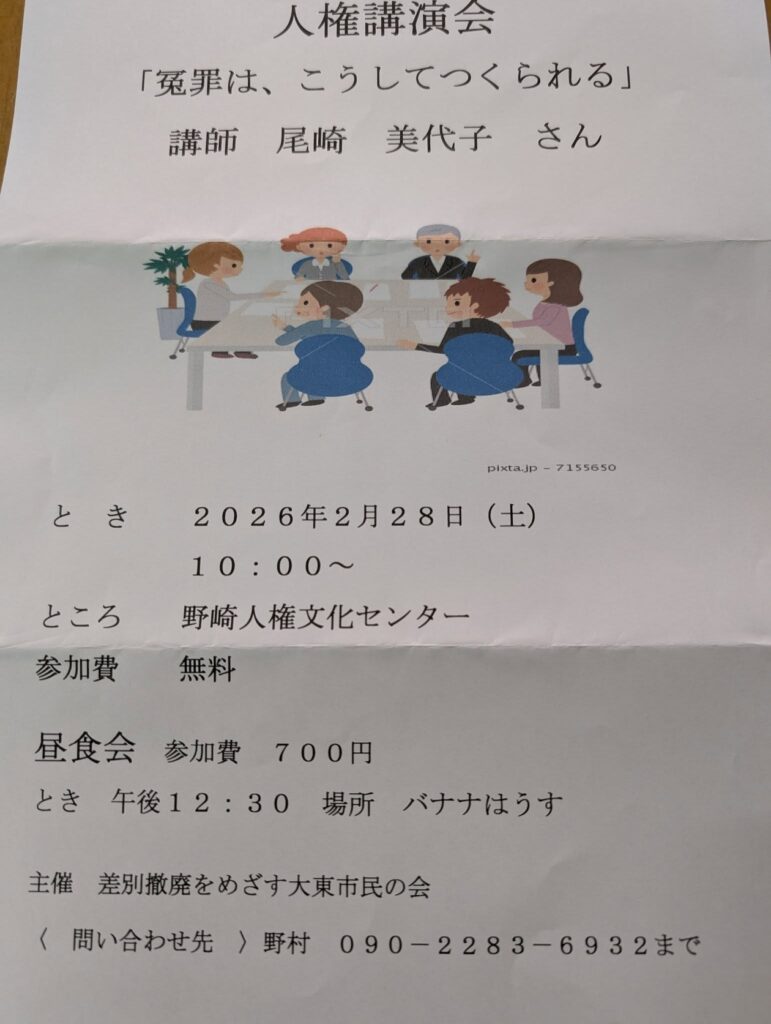 ◆2月28日大東市で冤罪のお話をします!