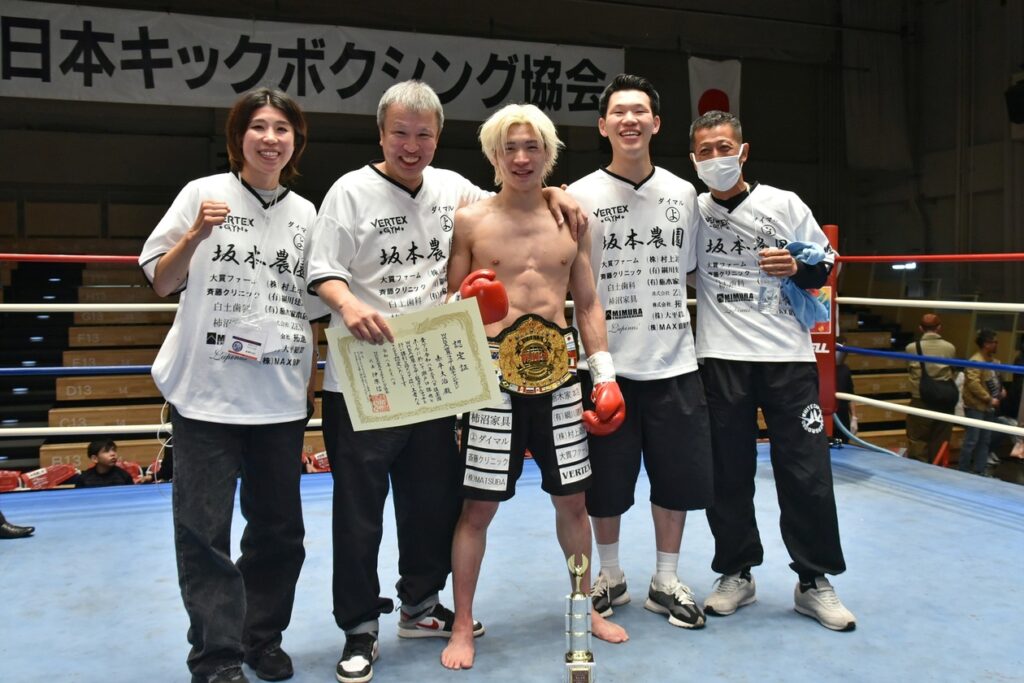 「パンチより脚を攻めて倒すことを決め、ゴングが鳴ると瀬戸口さんがサウスポーになり、カーフキックが効いていると確信しました。パンチをしっかり見て、カーフキックを打ち込み、TKOすることが出来ました。」と展開を語った。