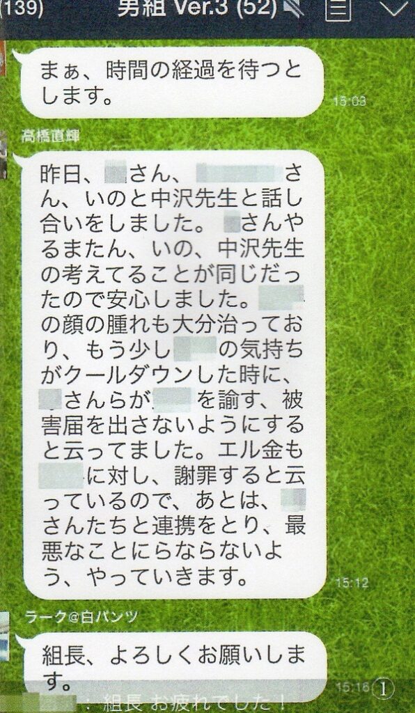 【5】事件直後のしばき隊(男組)関係者のLINE