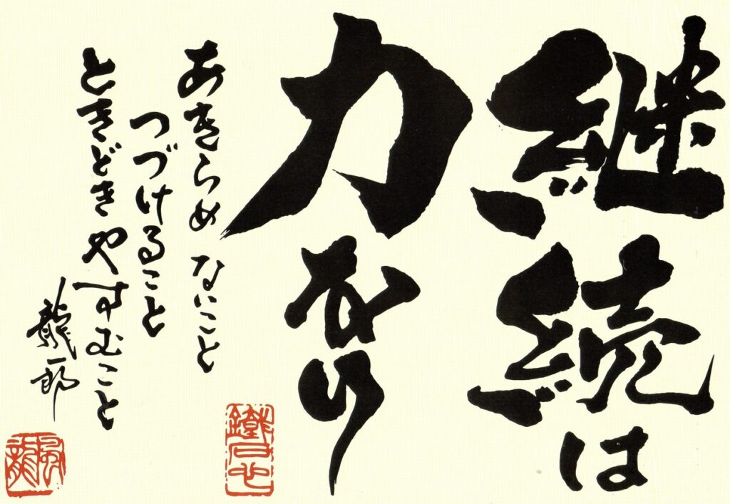 《5月のことば》継続は力なり(鹿砦社カレンダー2026より。龍一郎揮毫)
