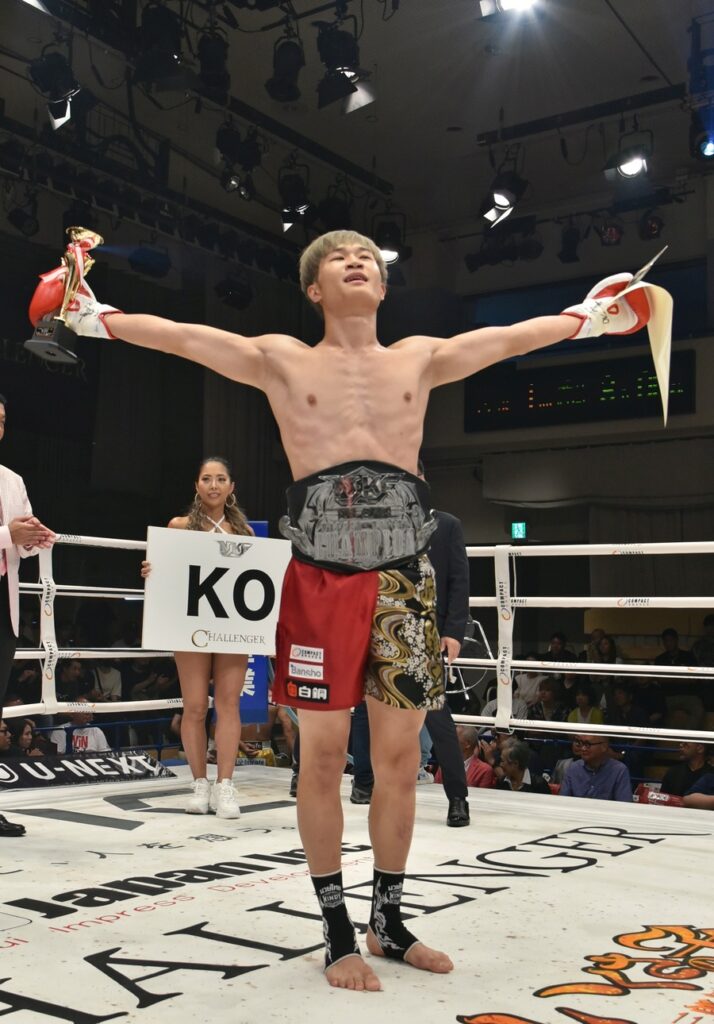 JKイノベーション・バンタム級チャンピオン.蒔・センチャイジム(=佐藤蒔音)