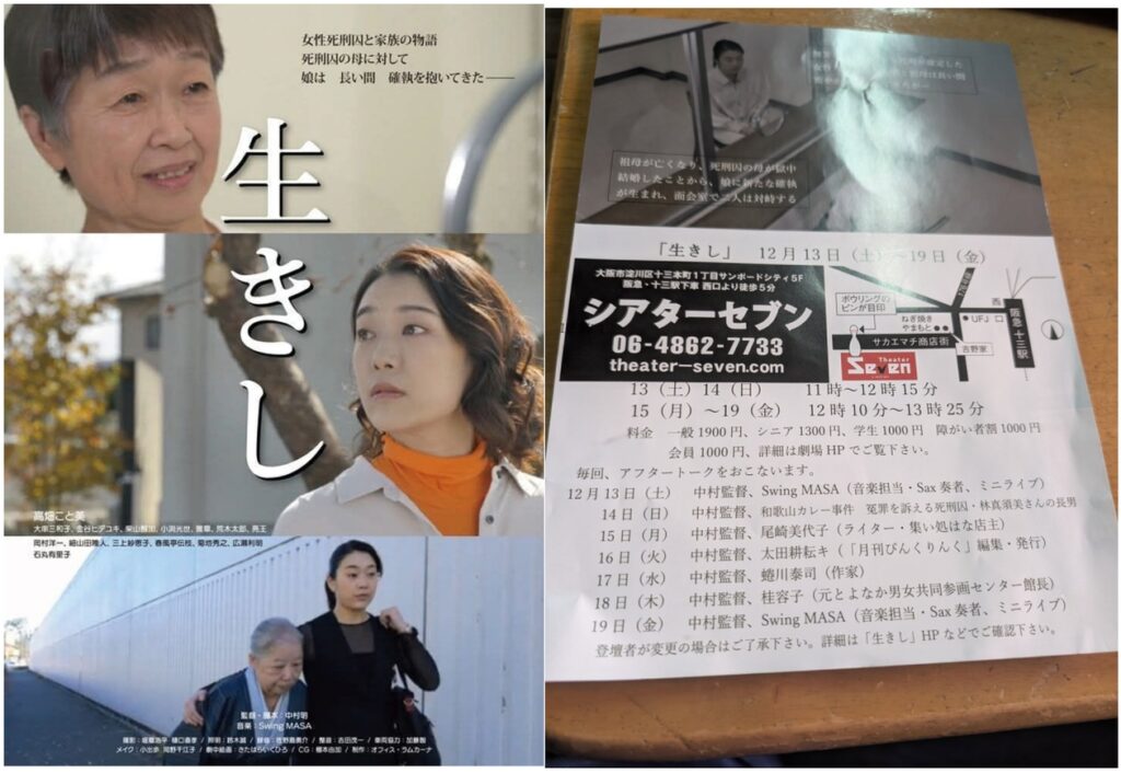 映画「生きし」は、事件そのものを追うのではなく、あくまでもその事件をモチーフとした内容です。関根と一緒に逮捕され、関根同様に死刑囚となった元妻・風間博子さんと、実の母親、そして娘の関係、無実を訴える風間さんと支援者らの交流などを描いています。