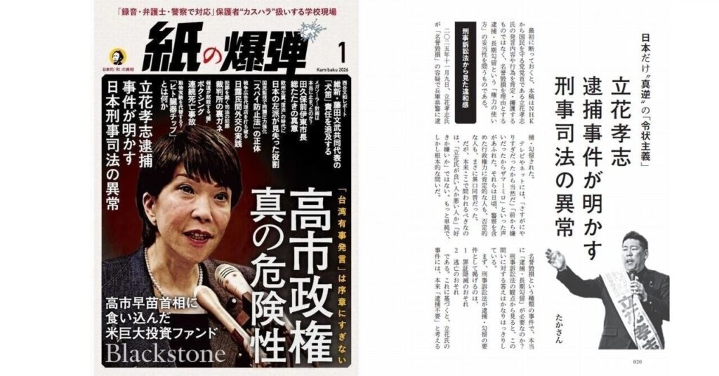 月刊「紙の爆弾」1月号から一部記事を公開。独自視点のレポートや人気連載の詰まった「紙の爆弾」は全国書店で発売中です(毎月7日発売。定価700円)。書店でもぜひチェックしてください。最新号の記事タイトル一覧はホームページをご覧ください。