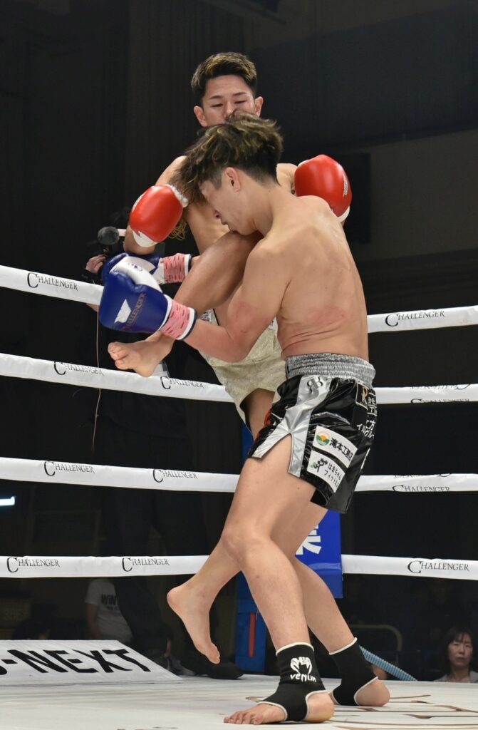 蹴りとパンチの交錯から藤井昴が手応えを感じたのか攻勢を強め、コーナーで藤井昴が右ストレートで中島隆徳からノックダウンを奪い、再開後直ぐに藤井昴が右ストレートで倒してカウント中のレフェリーストップの圧倒勝利。